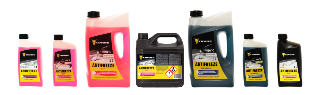 COYOTE Antifreeze G13 je chladicí kapalina na bázi ethylenglykolu obsahující organické inhibitory koroze v kombinaci se silikáty. Coyote Antifreeze G13 celoročně chrání chladicí systém motorového vozidla před působením mrazu a před korozí. Zaručuje velmi dobrý převod tepla. Je vhodný pro celohliníkové motory. V antikorozních a nemrznoucích vlastnostech odpovídá normám VW TL 774 typ J, AS 2108-2004, BS 6580, ASTM D1384, D2570, D3306, D4340, MAN 324 Si-OAT, SAE J 1034, Mercedes Benz 325.5., UNE 26-361-88. Kapalina je mísitelná se všemi kapalinami na bázi ethylenglykolu stejné výkonnostní kategorie. Výměnná lhůta produktu v systému je 5 let nebo 250 000 km u osobních automobilů podle toho co nastane dříve.
