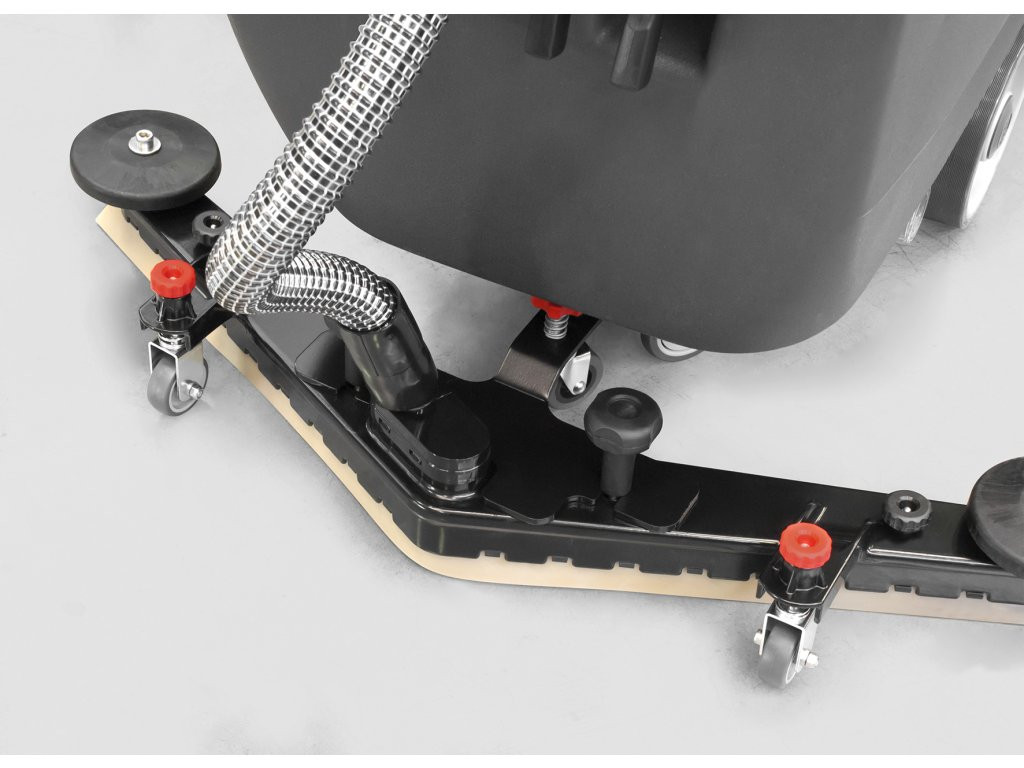 Konstrukce je vyrobena z tvrzeného plastu a tak je stroj odolný proti nárazům. Kartáč i stírací lišty lze jednoduše nasadit bez nutnosti použití nářadí. Nový systém nastavení tlaku stírací lišty zaručuje ihned perfektně suchou podlahu. Kolečka za stírací lištou nezanechávají při čištění stopu.