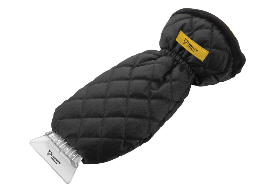 Praktikus jégkaparó meleg szőrmével bélelt kesztyűvel.