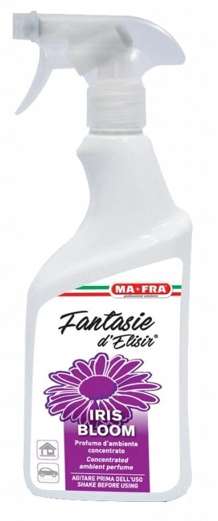 A Mafra Fantasie by Elisir® a tiszta illóolajokon alapuló luxus, magas koncentrációjú esszenciák sorozata. Alkalmasak otthonra, szállodákba és autókba, semlegesítik a szagokat, és akár 3 napig tartó hatást garantálnak. Alkoholmentes, vízben oldódó, a haute parfüméria és az aromaterápia által inspirált jegyekkel. A Fantasie d'Elisir Iris Bloom egy írisz illat aldehidikus csúcsjegyekkel, amelyeket a szívben ylang ylang és írisz egészít ki. A befejezés a vanília és a málna finom kombinációja.