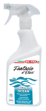 MA-FRA - Fantasie di Elisir 500ml - OCEAN illat - Magas koncentrációjú légfrissítő illóolajokkal. Semlegesíti a kellemetlen szagokat, kellemes illatú.