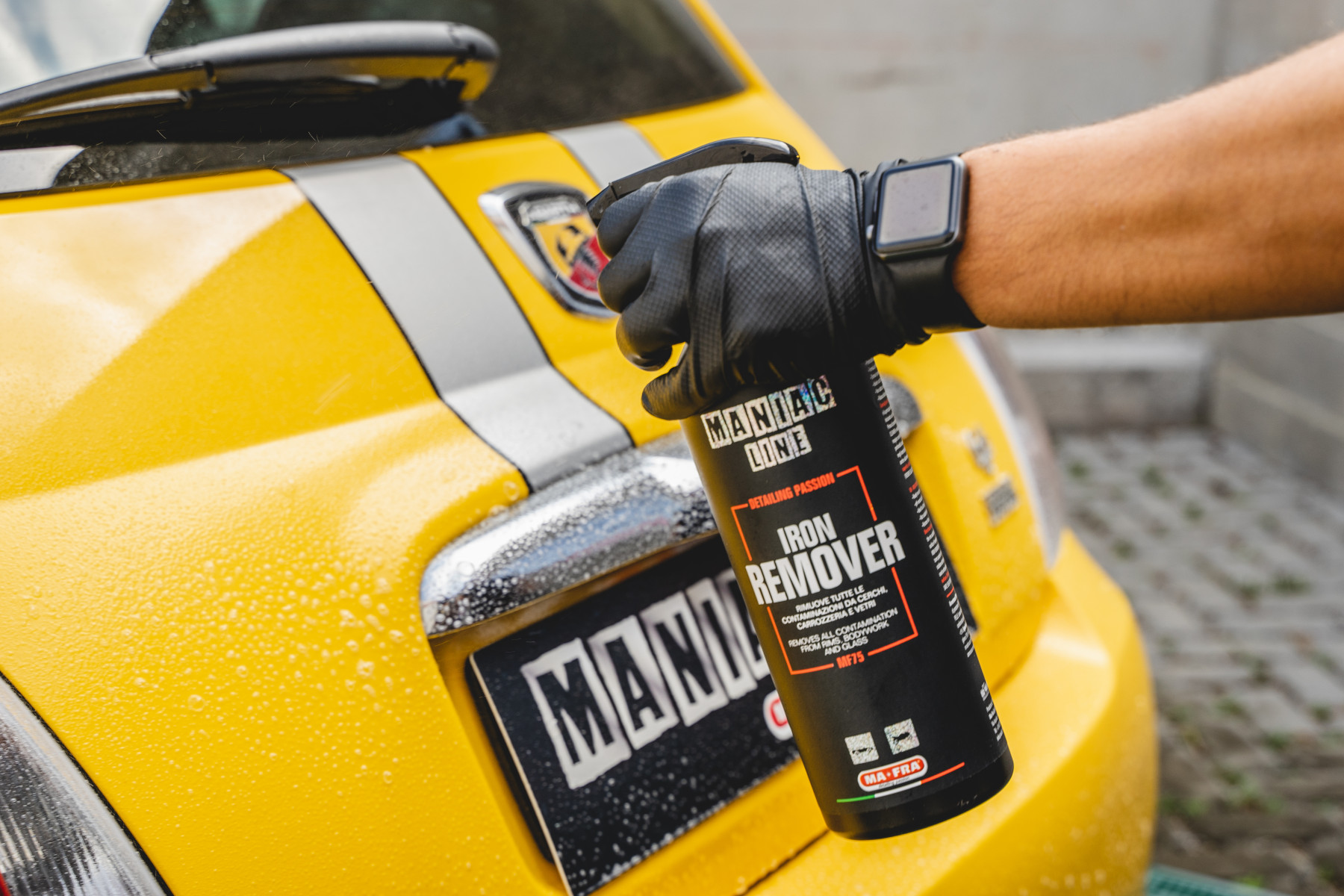 Přípravek „MANIAC - odstraňovač železa“ odstraňuje kontaminaci z oxidu železa, jako je odolně usazený brzdový prach a železné částice vzniklé třením na železničních nebo tramvajových kolejích a průmyslovým znečištěním a znečištěním na silnicích nebo staveništích. Doporučujeme používat přípravek „MANIAC - odstraňovač železa“ vždy, když je karoserie matná nebo hrubá na dotek a pokud disky kol po umytí vykazují malé tečky nebo skvrny. Pro dosažení nejlepších výsledků použijte kartáč vhodný pro ošetřovaný povrch.