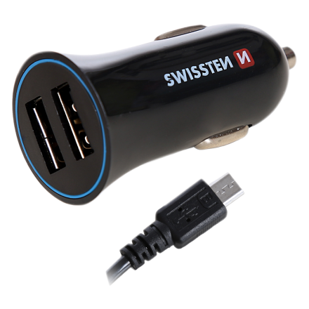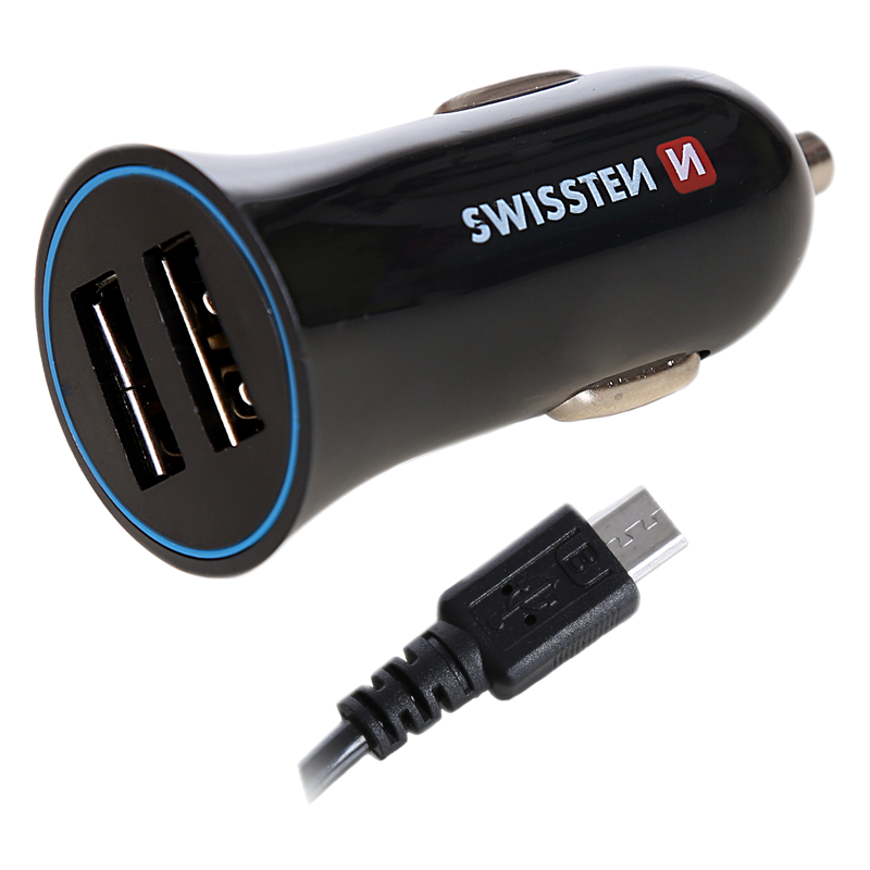 | Připojte nabíječku do autozásuvky. Až poté připojte konektor nabíječky do smartphonu. Nevystavujte vlhkosti, vysokým teplotám a mechanicky nepoškozujte. | Nabíječka USB 12/24V SWISSTEN 2,4AMP 2x USB + kabel Micro USB (PB-44056) |