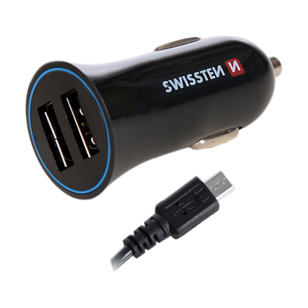 | Připojte nabíječku do autozásuvky. Až poté připojte konektor nabíječky do smartphonu. Nevystavujte vlhkosti, vysokým teplotám a mechanicky nepoškozujte. | Nabíječka USB 12/24V SWISSTEN 2,4AMP 2xUSB, kabel Micro USB, originál kabel (PB-44482) |