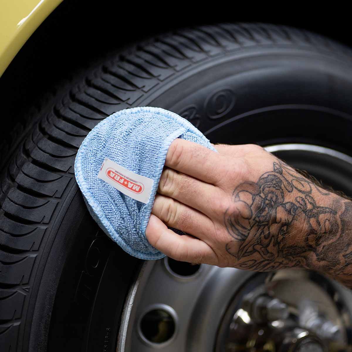 Postup použití: Naneste produkt na mikrovláknový aplikátor a rovnoměrně jej rozetřete po celém povrchu pneumatiky, nechte přípravek zaschnout na povrchu.
