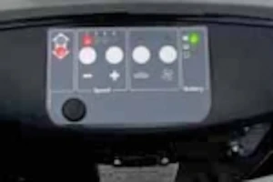 Uživatelsky přívětivý ovládací panel má hlavní vypínač stroje, nabízí program mytí a sušení, umožňuje nastavení rychlosti a zobrazuje nabití baterie. Pákou na rukojeti ovládáte jízdu stroje vpřed a vzad.