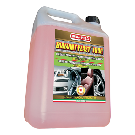 MA-FRA – DIAMANTPLAST FOUR 4,5 l ošetrenie plastov – interiér – Prípravok chráni a vyživuje ošetrované plastové, gumové a kožené povrchy. Zanecháva matný vzhľad.