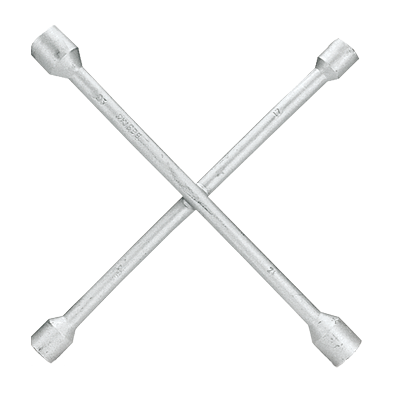 Krížový kľúč vhodný na ľahké uťahovanie a povoľovanie matíc kolies s rozmermi 17, 19, 21 a 23 mm.