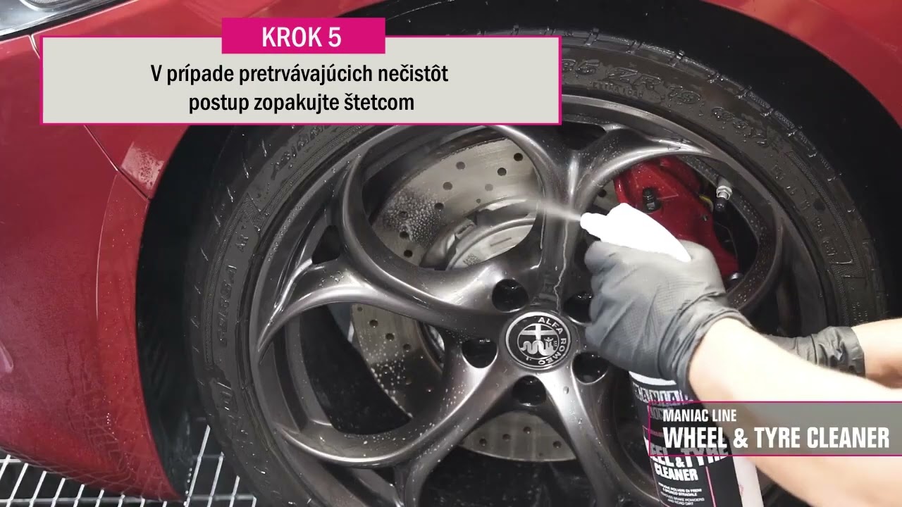 Ak po umytí čistiacim prostriedkom na kolesá a pneumatiky MANIAC stále zostávajú nečistoty, najmä v záhyboch kolies, ide o železné nečistoty, a nie o cestnú špinu. V tomto prípade odporúčame použiť náš dekontaminačný prípravok "MANIAC Iron Remover", ktorý ľahko odstráni železité nečistoty.