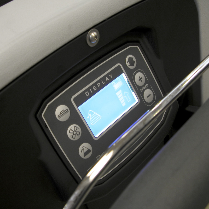 Batériovo napájaný stroj na čistenie podláh obsluha ovláda na veľmi intuitívnom paneli, kde môže nastaviť rýchlosť stroja, tlak kefy, množstvo čistiaceho prostriedku a intenzitu sania. Obsluha môže na displeji vidieť aj prevádzkové informácie, napríklad o nízkom stave nabitia batérie. To umožňuje obsluhe plánovať čistenie. Model Evo 66BTA je vybavený meračom motohodín, filtrom a elektromagnetickým ventilom pre čistiaci roztok.