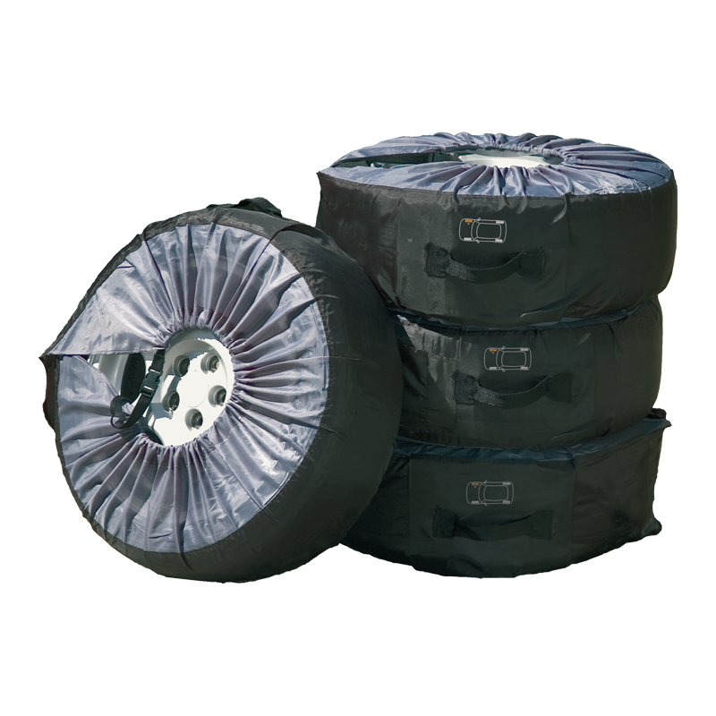 4 tašky na pneumatiky pre čisté skladovanie pneumatík s integrovanými držadlami. Univerzálna veľkosť, vhodná pre šírku pneumatiky až 225 mm. Vodoodpudivý materiál, možnosť umytia až do 30 °C. Materiál: polyester. Verzie: 13 “– 18” (priemer až 62 cm).